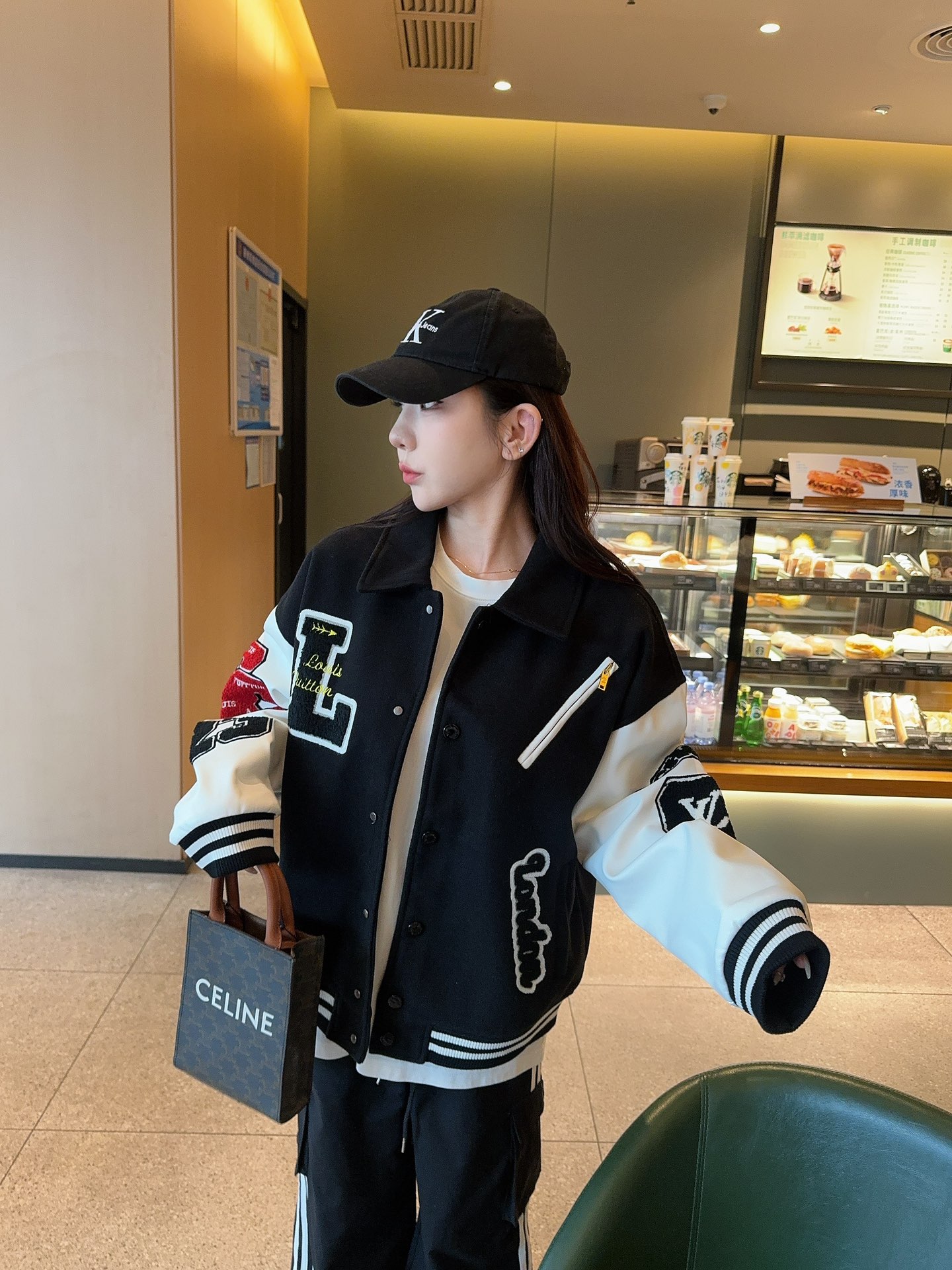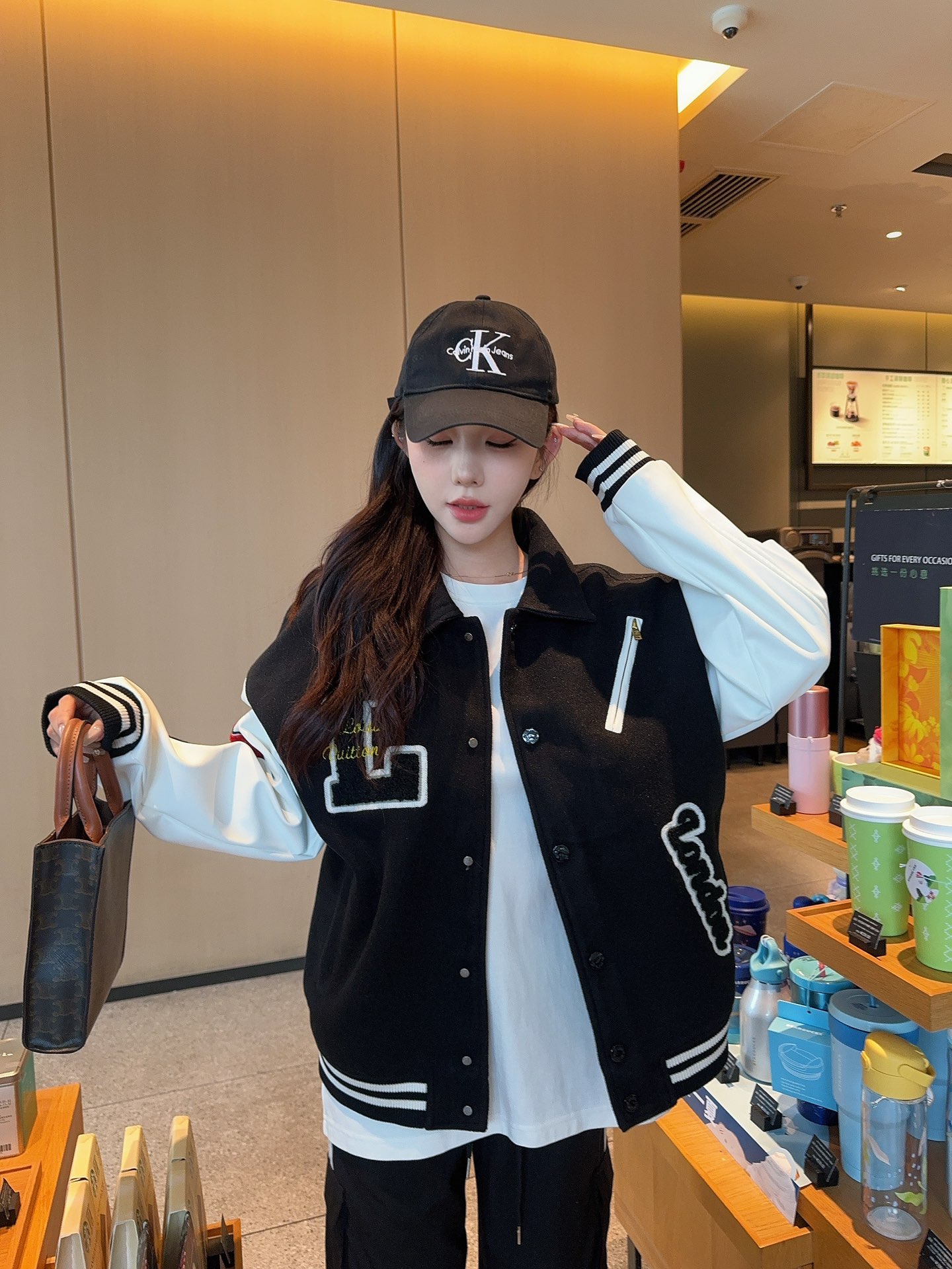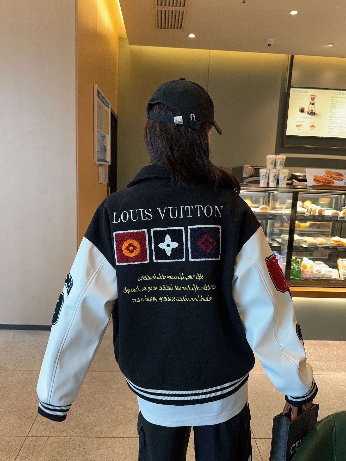 ルイ・ヴィトン「Louis Vuitton」のパッチ刺繍スプライスベースボールジャケット-isetant