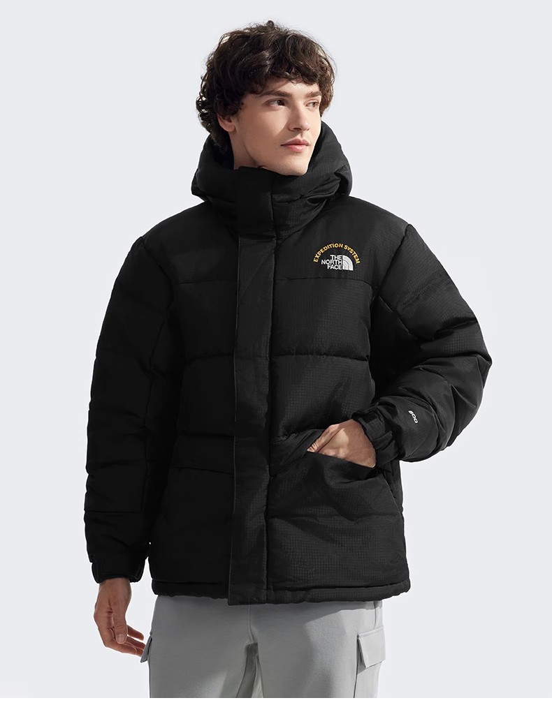 The North Face 2024 年モデルの新商品、クラシックなアイコンシリーズの男性用 HMLYN ヒマラヤ産ガチョウの羽毛で保温効果のあるダウンジャケットです